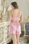 Çamaşır Kenti marka 3'lü Saten Şortlu Takım Pembe, şıklığı ve rahatlığı bir arada sunuyor.