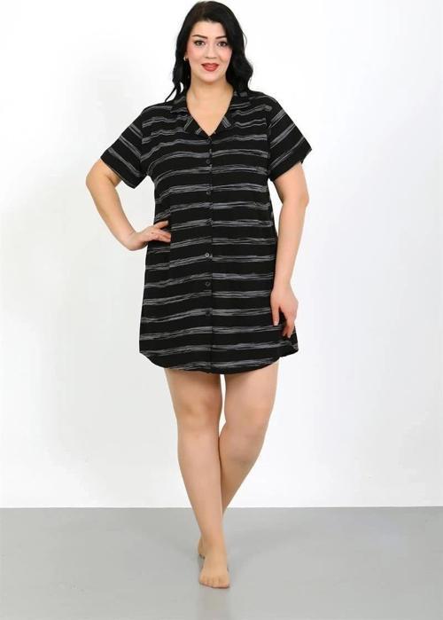 Kadın Büyük Beden Penye Düğmeli Tunik Gecelik