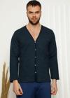 Erkek %100 Pamuk Önden Düğmeli Cepli Uzun Kollu Pijama Takımı