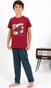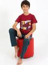 Çamaşır Kenti Erkek Çocuk Kısa Kol Penye Pijama Takımı Bordo, hem şık hem de rahat bir uyku deneyimi sunar.