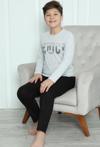 Çamaşır Kenti Erkek Çocuk Penye Pijama Takımı Gri, küçük beylerin rahat ve şık bir görünüme sahip olmalarını sağlar. İnce penye kumaşıyla yaz aylarında da rahatlıkla kullanılabilir.