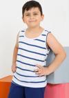 - Üst Parça: Sıfır kollu, beyaz zemin üzerine mavi yatay çizgili atlet