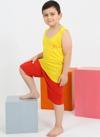 - Üst Parça: Sıfır kollu, sarı renkte atlet