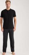 Giyim Erkek Pamuk Lakost Alt Üst Kaprili Pijama Takım Siyah - Image 1
