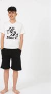 Çamaşır Kenti'nin özel tasarımı olan Erkek Genç Garson Boy Kısa Kol Ekru Penye Şortlu Pijama Takımı, hem şık hem de rahat bir seçenektir. İşte bu pijama takımının özellikleri: