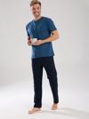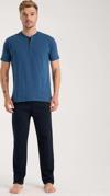 Erkek İndigo Düğmeli Yaka Kısa Kol Pijama Takımı ile hem şık hem de rahat bir gece geçirebilir, günün yorgunluğunu üzerinizden atabilirsiniz.