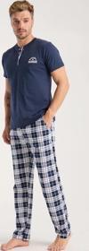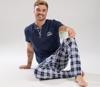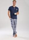 Buratti Ekoseli Pamuklu Regular Fit Kısa Kollu Erkek Pijama Takımı 6572002 LACİVERT-SAKS - Image 1