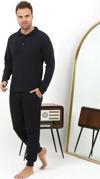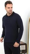 Giyim Erkek Polo Yaka Uzun Kol Penye Pijama Takımı Lacivert