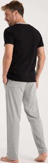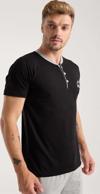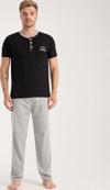 Alfa aksesuar 03 Giyim Erkek Siyah Düğmeli Yaka Kısa Kol Pijama Takımı