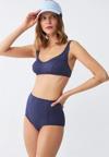 Giyim Kadın Basic Lacivert Pedli Yüksek Bel Bikini Takımı