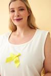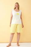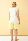 - Beyaz kurdele detaylı sarı çizgili şortlu üst