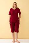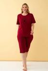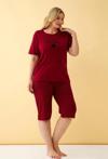 Çamaşır Kenti'nin özel tasarımı olan Kadın Bordo Kalp Desenli Büyük Beden Kapri Pijama Takımı, rahatlığı ve şıklığı bir arada sunuyor.