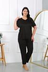 Çamaşır Kenti Kadın Büyük Beden Kısa Kol Penye Pijama Takımı Siyah, konforu ve şıklığı bir arada sunar.