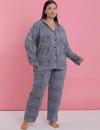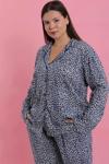 Çamaşır Kenti'nin özel tasarımı Büyük Beden Mavi Leopar Desenli Düğmeli Pijama Takımı ile konforu ve şıklığı bir arada yaşayacaksınız.
