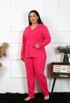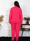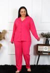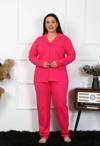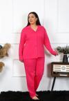 Giyim Kadın Büyük Beden Pamuklu Cepli Düğmeli Fuşya Pijama Takım