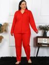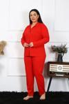 Çamaşır Kenti markası tarafından özenle tasarlanan Kadın Büyük Beden Pamuklu Cepli Düğmeli Kırmızı Pijama Takımı, şıklığı ve rahatlığı bir arada sunar.