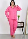 Çamaşır Kenti markasının özel tasarımı olan Kadın Büyük Beden Pamuklu Cepli Düğmeli Pembe Pijama Takımı, şıklığı ve konforu bir arada sunuyor.