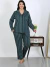 Çamaşır Kenti markasının özel tasarımı olan Kadın Büyük Beden Pamuklu Cepli Düğmeli Petrol Pijama Takımı, şıklığı ve konforu bir arada sunuyor.