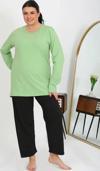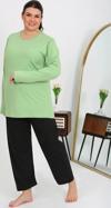 Giyim Kadın Büyük Beden Uzun Kol Penye Pijama Takımı Fıstık Yeşili