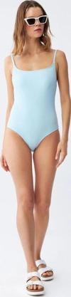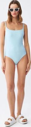 Alfa aksesuar 03 Giyim Kadın Buz Mavisi İnce Askılı Düz Tek Parça Mayo