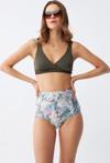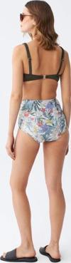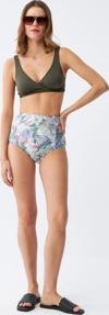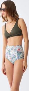 Çamaşır Kenti'nin özel tasarımı olan Kadın Haki Pedli Üst ve Yüksek Bel Çiçek Desenli Bikini Takımı, plajda şıklığı ve rahatlığı bir arada arayan kadınlar için ideal bir seçenektir.