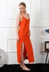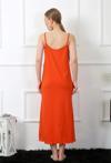 Bir kadının zarafetini ve şıklığını yansıtan Çamaşır Kenti marka ip askılı Turuncu uzun gecelik, rahat ve şık bir seçenektir.