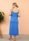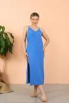 Modern ve şık tasarımıyla dikkat çeken Çamaşır Kenti Kadın İp Askılı Yırtmaçlı Uzun Mavi Gecelik, gece giyiminde tarzınızı tamamlamak için ideal bir seçimdir.