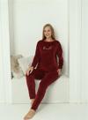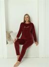İnce askılı elbiseler kadar şık olan bu pijama takımı, gece rahatını ön planda tutarken tarzınızdan ödün vermek istemeyen kadınlar için ideal bir seçimdir. Kendinizi özel hissetmek ve konforlu bir uyku deneyimi yaşamak için Çamaşır Kenti Kadın Kadife Bordo Pijama Takımı tam size göre!