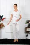 Giyim Kadın Kısa Kol Hamile Lohusa Pijama Takımı Ekru
