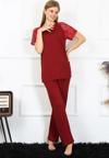 Kadın Kolu Dantelli Penye Pijama Takımı Bordo, hem şık görünmek hem de rahat etmek isteyen kadınların tercihi olacak. Siz de bu özel pijama takımı ile gece şıklığınızı tamamlayabilirsiniz!
