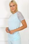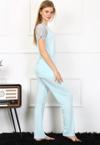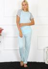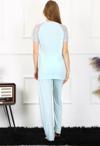 Şıklık ve rahatlığı bir arada sunan Çamaşır Kenti Kadın Kolu Dantelli Penye Pijama Takımı Su Yeşili, günün yorgunluğunu atmaya yardımcı olacak enfes bir seçenektir. İnce penye kumaşıyla teninizde hafif bir dokunuş sağlarken, dantel detaylarıyla da şık bir görünüm sunar.