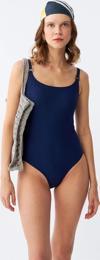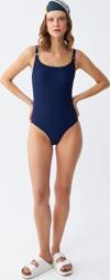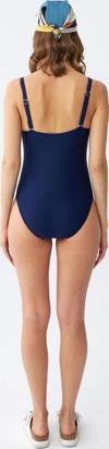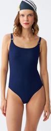 Giyim Kadın Lacivert Metal Aksesuarlı İnce Askılı Tek Parça Mayo
