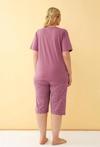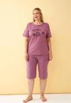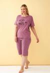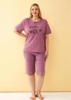 Giyim Kadın Mürdüm “Make a Wish” Yazılı Büyük Beden Kapri Pijama Takımı