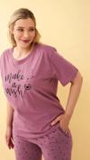 Alfa aksesuar 03 Giyim Kadın Mürdüm “Make a Wish” Yazılı Büyük Beden Kapri Pijama Takımı