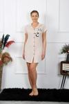 Alfa aksesuar 03 Giyim Kadın Pamuk Penye Kısa Kol Düğmeli Krem Tunik Gecelik