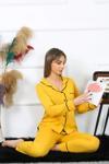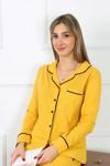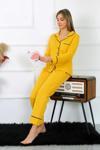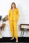Çamaşır Kenti markasının şık ve rahat tasarımıyla Kadın Pamuk Penye Önden Düğmeli Uzun Kol Sarı Pijama Takımı, konforunuzu ön planda tutar.