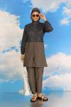 Giyim Kadın Pantolonlu Desenli Tam Tesettür Mayo Füme