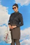 Alfa aksesuar 03 Giyim Kadın Pantolonlu Desenli Tam Tesettür Mayo Füme