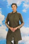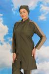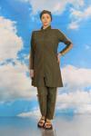 - Çamaşır Kenti markasıyla sunulan Kadın Pantolonlu Kolu Şeritli Tam Tesettür Mayo Haki, şıklığı ve rahatlığı bir arada sunar. Plaj giyiminde şıklığı tercih eden kadınların vazgeçilmezi olan bu mayo, tasarımındaki detaylarla dikkat çeker. İşte bu mayo ile ilgili öne çıkan özellikler: