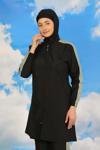 Çamaşır Kenti'nin özel tasarımı olan Kadın Pantolonlu Kolu Şeritli Tam Tesettür Mayo Siyah, plaj şıklığınızı tamamlayacak mükemmel bir seçenektir.