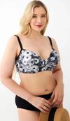 - Papatya desenli gri bikini üstü, askılı tasarımıyla dikkat çeker.