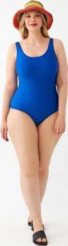 Kadın Saks Mavisi Büyük Beden Düz Tek Parça Mayo, tatilinizi renklendirmek ve plajda stilinizi konuşturmak için ideal bir seçimdir.