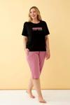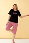 - Yazılı kapri pijama altı ve uyumlu tişört bulunmaktadır.