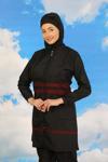 Giyim Kadın Pantolonlu Kolu Şeritli Tam Tesettür Mayo Siyah - Image 1