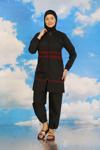 Alfa aksesuar 03 Giyim Kadın Pantolonlu Kolu Şeritli Tam Tesettür Mayo Siyah