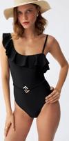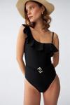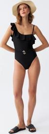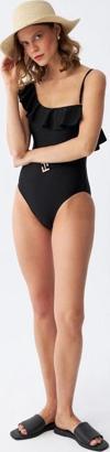 Çamaşır Kenti Kadın Tek Omuz Fırfırlı Mayo Siyah , plaj giyim koleksiyonunuzun vazgeçilmezi olmaya aday!