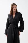 Çamaşır Kenti'nin şık ve zarif tasarımıyla dikkat çeken Kadın Uzun Siyah Saten Sabahlık, gece giyiminde şıklığı ve rahatlığı aynı anda arayan kadınların tercihi olacak.
