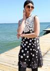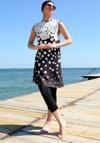 Alfa aksesuar 03 Giyim Sıfır Kol Puanlı Yarım Tesettür Mayo Siyah Peyaz Puantiye