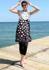 Giyim Sıfır Kol Puanlı Yarım Tesettür Mayo Siyah Peyaz Puantiye