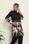 Giyim Tam Tesettür Dijital Desenli Mayo Siyah